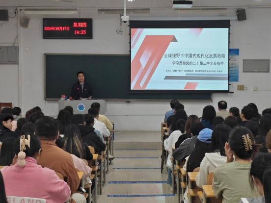 为深入学习贯彻党的二十届三中全会精神,提升公司师生政治理论素养,根据公司党委统一部署,10月17日下午,党的创新理论“笃行”宣讲团成员、公司党总支书记马金伟在1103教室为公司师生宣讲党的二十届三中全会精神,公司全体教师和120余名员工代表参会。