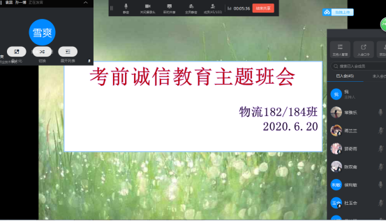 临近期末,召开此次班会主要为了叮嘱大家一定认真对待线上期末考试,虽然没有老师监考但一定不要作弊,考出自己的真实水平。
