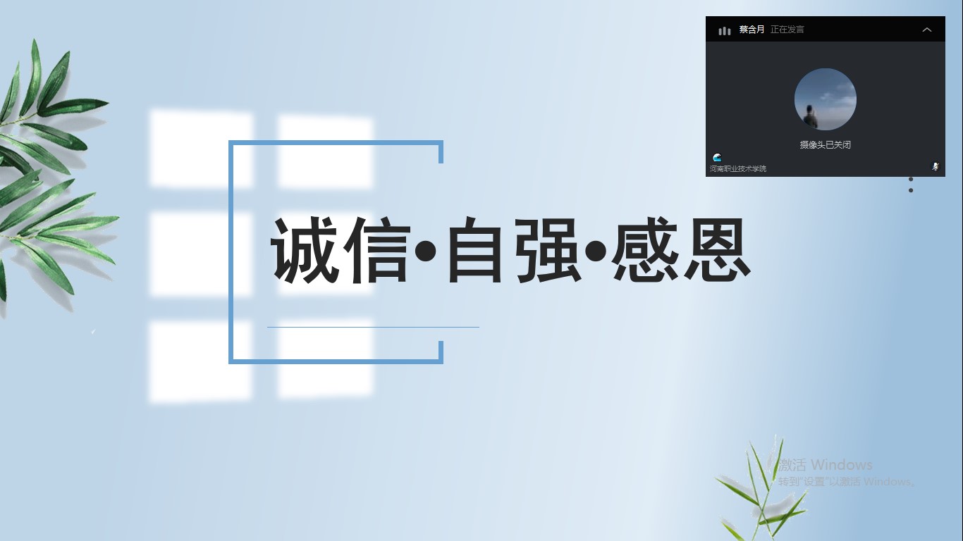 物流193班于2020年6月4日下午14:30采用钉钉视频会议的形式,开展了“诚信自强感恩”主题班会,同学们都充分的认识到了其的重要性,大家都会在以后的工作与学习中优良传统美德指导自己的一言一行。自古以来,凡是品德高尚的人,都是诚实守信知道感恩的人。孔子说:“人而无信,不知其可也。”只有有了诚信,你才能在社会立足,才能得到别人的尊敬,才能使他人信服,因为谁都不喜欢被欺骗。因此,做一个诚信自强感恩之人是我们的责任和义务,以及一个做人的最起码的原则!今天,我们重温我们优秀的道德文化传统,并在这丰富的道德资源中,汲取到中华民族腾飞的持久动力。希望同学们能牢记这一点,在今后的学习生活中,处处做到诚信自强感恩。为将来的人生道路打下坚实的基础。