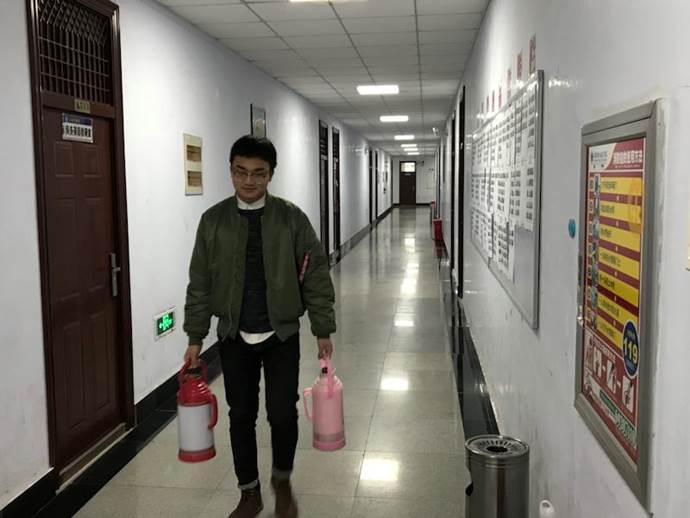 志愿者小组为老师接开水、打扫办公室