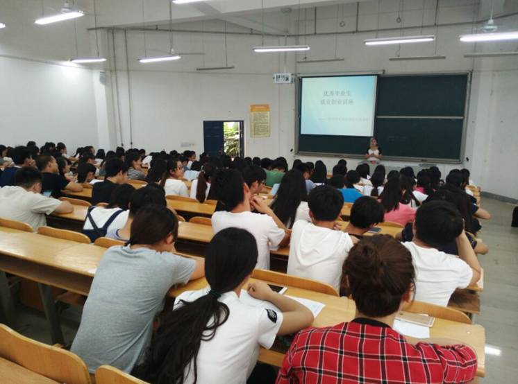 为引导员工端正创业、就业态度 ,6月18日下午,工商管理系邀请05届优秀毕业生郭海亮和余晓庆滨回校为该系近300名员工进行就业创业励志专题讲座。