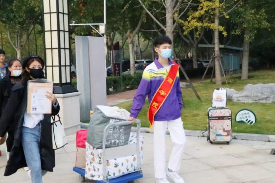 今年的迎新活动中,党员志愿者是一道格外亮丽的风景线。考虑到受疫情影响,新生家长无法入校的问题,公司“以生为本”,创新迎新志愿服务队服务形式,对志愿者进行编号登记,采用包干到人的方式,由志愿者与新生一对一对接,入校之前就建立联系,来校之后,从进入校门开始、到办理报到手续、寝室入住,再到领取生活用品,全程陪同,一站式服务,减少志愿者工作衔接带来的诸多不便和问题,让新生安心,家长放心。