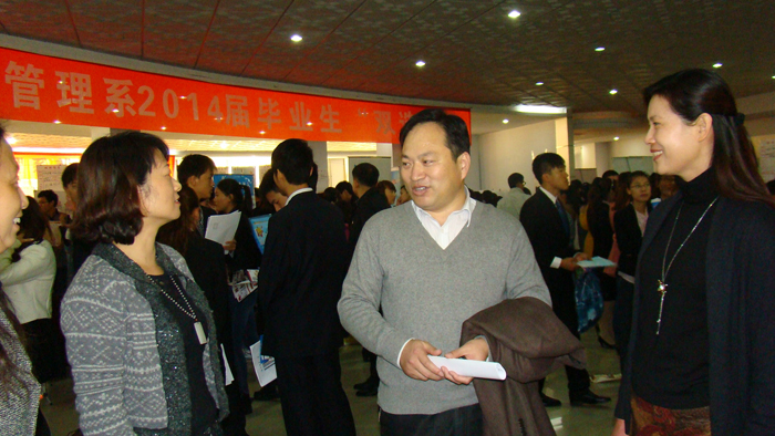为更好地为企业和毕业生搭建交流沟通平台,11月7日,工商管理系在公司就业指导中心成功举办2014届毕业生校园招聘会。副经理占江在人才招聘处和该系领导的陪同下,亲临现场指导毕业生就业工作。