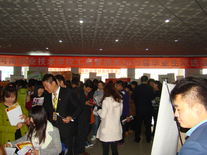 为方便员工咨询,该系分别在人才招聘处就业大厅和行政楼大厅布置了展台,占展位、抢优秀毕业生成了本届双选会的主旋律。为适应市场需求,进一步帮助员工就业,该系与丹尼斯百货、北京链家地产、德邦物流、顺丰速运、浙江人本百货等多家大型企业建立合作,通过订单培养,助推员工批量就业。同时,巴奴餐饮、美华房产、福瑞堂药业等本地及周边城市知名中小企业越来越在招聘会上唱起主角,专业对口成了员工的首要参考因素。