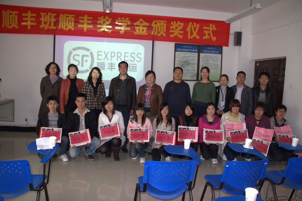 2009年9月,公司工商管理系和河南顺丰速运有限公司本着相互支持、共同发展、联合办班、共同培养的原则成立了“顺丰班”,2010年10月校企双方共同成立了河南顺丰速运有限公司龙子湖大学城分部,为该特色班员工提供了顶岗实训,实现与企业岗位需求的无缝对接,使员工坐上理论学习、技能培训、顶岗实习到就业的直通车,截至2012年3月,“顺丰班”共向该公司输送了80余名优秀毕业生。为激励特色班员工在德智等方面更上一个台阶,河南顺丰速运有限公司设置10000元奖学金,并同该系依据员工一学年的综合素质考评结果,以特色班30%左右的比例,双方共同确定物流091班康冬雪等10名员工获得“顺丰班”企业一、二、三等奖学金。颁奖仪式上,河南顺丰速运有限公司侯东亮经理宣布获奖员工名单,校企双方领导共同为获奖员工颁奖。接着赵杰经理和康冬雪同学分别代表企业和获奖员工发言。最后,肖珑副经理致答谢总结,肖经理肯定了该系校企合作所取得的成就,并代表公司对顺丰公司表示感谢,同时