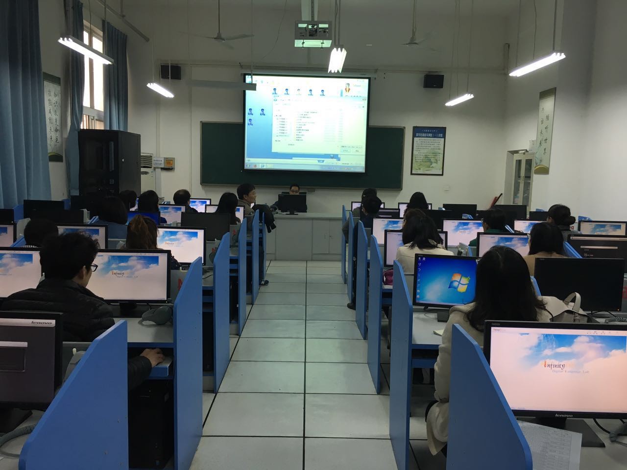 在培训会上,我系教学秘书夏连峰副教授首先就该平台的注册和使用进行了操作演示,对平台即时评价、阶段性评价、结果性评价、多终端等主要功能及平台的管理与使用方法进行了深入讲解。随后,与会教师各自独立进行了平台的操作,就使用过程中发现的问题进行了讨论,并形成意见建议反馈给开发单位进行进一步的优化。