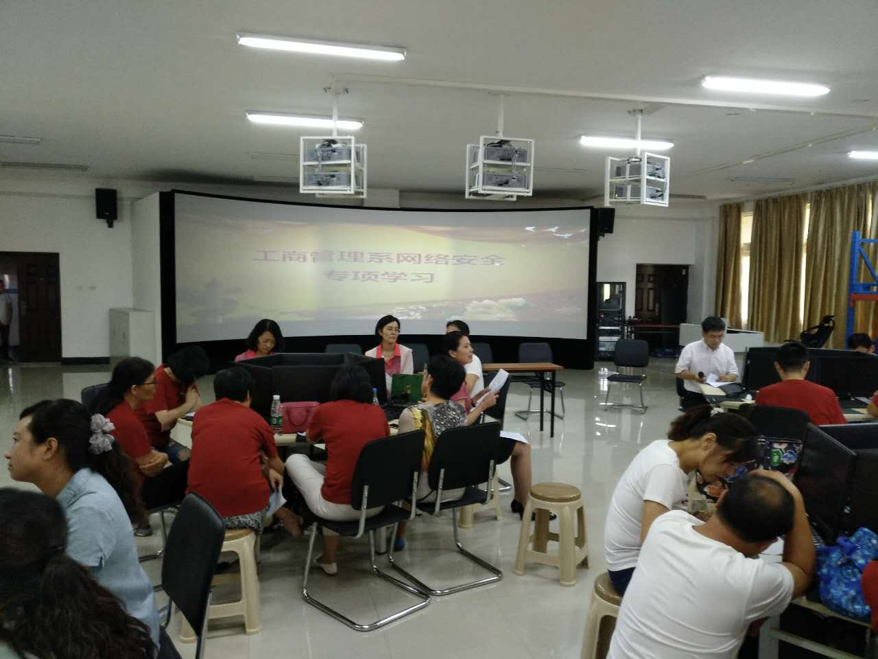 9月18日下午,工商管理系组织师生代表共100余人开展网络安全专项学习活动。活动由党总支书记李相勤主持。