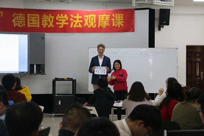 参加活动的教师普遍表示学习到了一堂地道的“德国课”的授课方法、教学设计和课堂组织形式,受益匪浅,在以后的教学中要积极改革自己的教学方式,将“德国方法”引入到自己的课堂。现场的员工也充满了自信,课堂的互动和成果展示虽然英语说的磕磕巴巴不太流利,但一节课下来也学到了新的口语表达形式,改变了自己的思维模式,提高了学习的兴趣和热情。