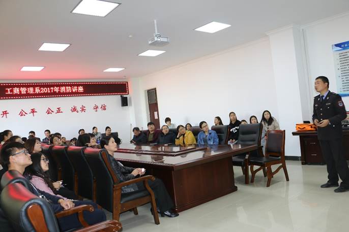 为进一步提高全系师生的消防法制观念及防控火灾、逃生自救的能力。11月2日下午,工商管理系邀请郑州市消防支队宣讲团曹玉臣同志为教师和员工代表代表送上一堂生动、精彩的消防安全知识讲座。