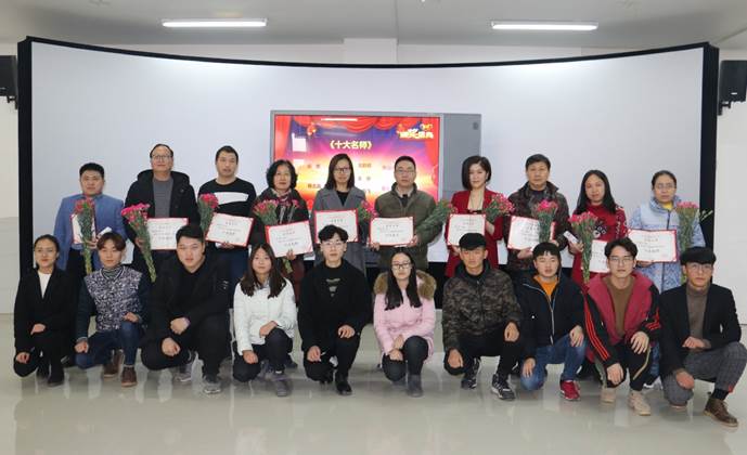 在颁奖环节,首先颁发的是2017年度员工最满意的十大名师奖,颁奖人是一群老员工,而领奖的却是他们的老师。颁奖词由员工撰写,优秀教师由员工海选,员工给老师们颁发了大红的证书,献上了母亲之花康乃馨,表达员工对老师的爱与尊敬,这样的评选活动在工商管理系开展了九年。随后,颁发了优秀辅导员奖和特殊贡献奖。