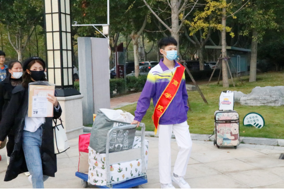 安排贴心,服务形式有创新。今年的迎新活动中,青年志愿者是一道格外亮丽的风景线。考虑到受疫情影响,新生家长无法入校的问题,公司“以生为本”,创新迎新志愿服务队服务形式,对志愿者进行编号登记,采用包干到人的方式,由志愿者与新生一对一对接,入校之前就建立联系,来校之后,从进入校门开始、到办理报到手续、寝室入住,再到领取生活用品,全程陪同,一站式服务,减少志愿者工作衔接带来的诸多不便和问题,让新生安心,家长放心。