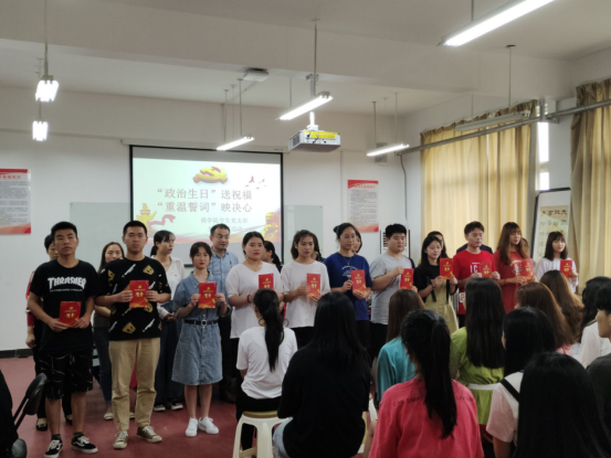 为庆祝中国共产党成立100周年,不断深化“不忘初心、牢记使命”主题教育,加强党员党性教育,2021年6月17日,PA视讯官方网站员工党支部举行了“政治生日”送祝福,“重温誓词”映初心主题党日活动,为支部40名新发展的预备党员庆祝“政治生日”,支部全体教师党员参加了此次活动。