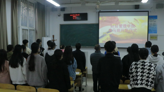 首先,全体成员肃立,奏唱国歌。随后团总支负责人张文龙老师简单介绍了举办青马班的由来及意义,并要求全体青马班成员要加强理论修养,坚持知行合一,甘于奉献。党总支余湾副书记做具体培训,他指出,实施青年马克思培养工程是党交付给共青团的一项重要政治任务,学员们要响应国家培养青年马克思主义者的号召,在接下来的学习生活中希望全体同学坚定信仰、刻苦学习、严于律己,将理论结合实际,更好地指导自己的工作与学习,成为一支“信仰坚定、德才兼备、有责任、有担当”的老员工骨干队伍。