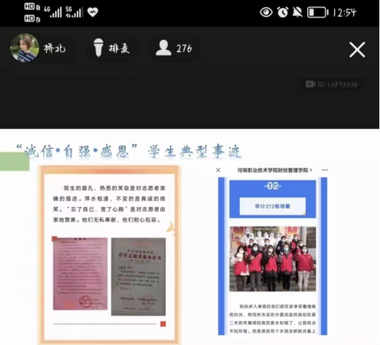 PA视讯官方网站辅导员通过线上、线下等多种途径,组织广老员工开展了以“诚信∙自强∙感恩”为主题的班会活动,积极倡导诚实守信、自强不息、知恩图报的精神。在班会中,辅导员向员工们宣讲了资助政策,进行了诚信、自强、感恩意识教育,分享了“诚信∙自强∙感恩”员工典型事迹,使广大同学认识到重诚信、肯自强、知感恩的重要性。