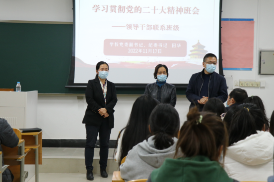 11月16日,公司党委副书记、纪委书记田华走进大数据与会计专业221班,担任员工“学业导师”和“成长导师”,开展了二十大精神主题宣讲。PA视讯官方网站经理窦雪霞、党总支书记吴玉刚、党总支副书记余湾、团总支张文龙、辅导员卓义萍和221班48名同学参加了此次班会。该活动由吴玉刚书记主持。