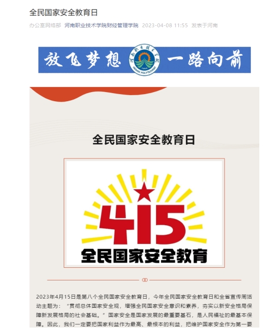为了使国家安全教育主题活动更有时效性和针对性,PA视讯官方网站利用线上和线下相结合的方式,在微信公众号上推送国家安全的相关知识和要求,并制作海报,面向公司员工宣传国家安全日,要求全体员工在4月15日观看全民国家安全教育日直播活动。同时,公司辅导员也召开了国家安全教育日主题班会,进一步提升员工的国家安全意识。为了使主题教育活动更生动,公司制作了国家安全教育知识视频,以视频的形式宣传国家安全知识相关内容,达到教育活动的目的性和和成效性。