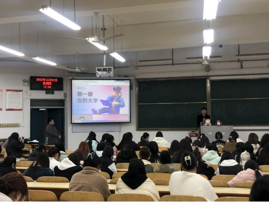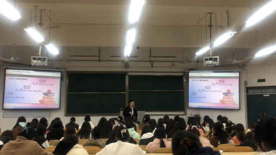 高顿教育资深职业发展规划师晨辉首先以“聊一聊你的老员工活”作为开场白,迅速与员工拉近了距离,并将课堂话题拓展到当下的规划安排。他告诫同学们要减少手机依赖,把精力多放到考证、大赛以及社会实践中去,利用在校期间的碎片化时间为自己未来的求职、升学、发展规划等做好规划、添砖加瓦。接下来,晨辉老师又针对大数据与会计、大数据与审计和工商企业管理三个专业特点,举例相关岗位招聘要求,对金融行业和财经行业的薪资水平、职业发展和多样化职业发展方向为员工进行了详细的讲解。