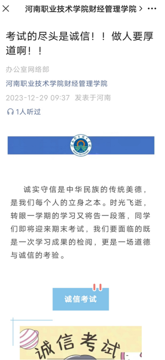 在期末考试来临之际,公司首先通过公众号发布了《考风考纪教育校纪校规篇》等系列推送,强化员工的诚信考试意识。同时公司组织了诚信考试签名活动,全体员工积极参与签署《诚信考试承诺书》,进一步强化了他们对诚信的承诺。此外,公司各辅导员分别组织召开了主题班会,深入讨论《员工手册》中的考场规则和考试违纪处分相关规定,并鼓励大家自主学习,充分准备考试。班会中,辅导员通过分享真实的违纪案例,使员工深刻感受到诚信考试的重要性。