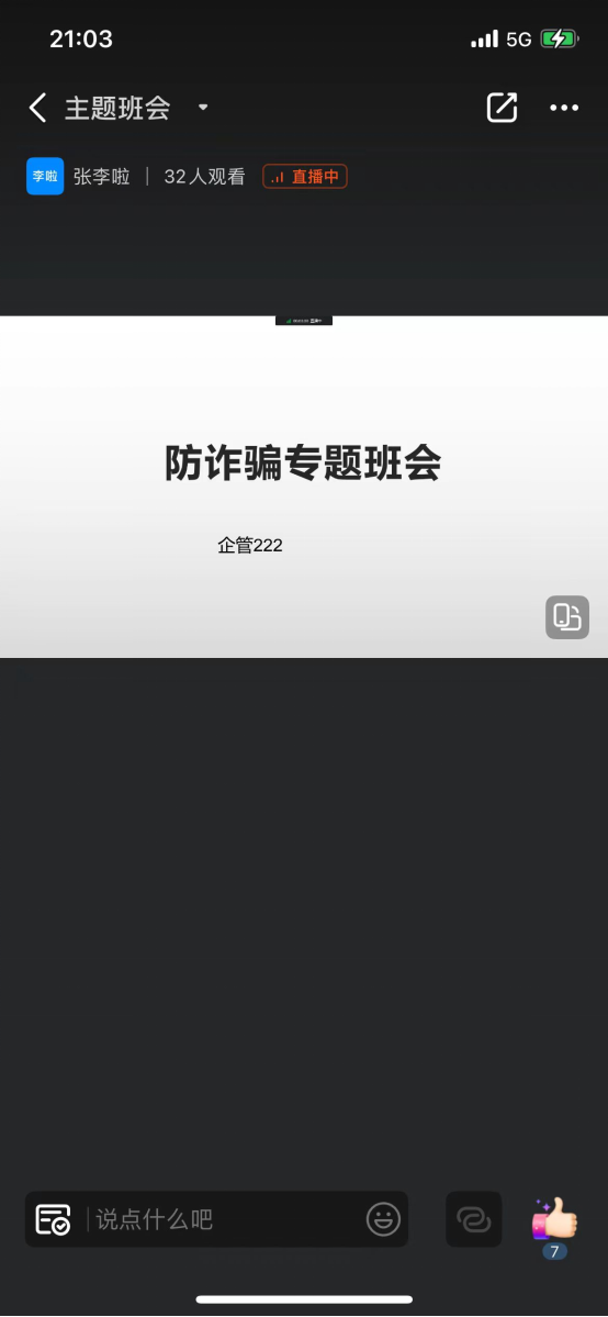本次防范诈骗专题教育活动以班会的形式开展。班会上,各班辅导员首先强调了当前诈骗行为的多样性、隐蔽性和危害性,以及加强防诈骗教育的重要性和紧迫性。随后通过真实的案例和详实的数据深入浅出的为员工介绍了刷单返利兼职、冒充熟人、冒充贷款客服、购买游戏装备、冒充客服快递丢失退款、好友“出事”需钱抢救、充值返利诈骗、假冒公检法虚假投资理财平台、“校园贷”诈骗等常见诈骗形式。并结合员工的心理特点,详细分析了诈骗分子屡屡得手的原因,提醒员工牢固树立反诈骗意识,引导他们树立“不轻信、不透露、不转账”的防骗意识,切实提高识别和防范诈骗的能力。