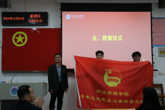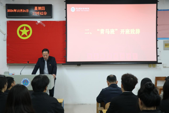 仪式在庄严的国歌声中拉开帷幕,余湾作开班致辞,他强调,全体学员要提高政治站位,明确学习目标,高标准完成所有培训课程;坚持理论联系实际,慎思笃行,不断提升政治思想觉悟;严格遵守纪律,充分发挥模范带头作用。接下来,第五期青马班优秀学员代表宫博研、本期青马班学员代表蔡亚蒙分别上台发言;随后,马金伟为第六期青马班授旗。最后,马金伟以“中国共产党的百年奋斗历程及经验启示”为题为青马班学员上了第一课,并要求全体青马班学员通过理论学习、能力训练、交流研讨、实践锻炼等方式,学习和掌握马克思主义中国化的最新成果,在党和人民事业的坐标上寻找自己的人生方位,在民族复兴、人民幸福的进程中明确人生追求,以革命理想为蓝图,以青春为笔墨,奋进新征程,建功新时代。