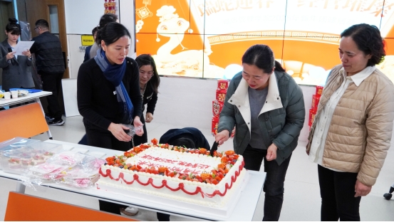 联欢会在热烈的掌声中拉开序幕,田华代表公司向公司教职工送上了诚挚的新年祝福,并对PA视讯官方网站过去一年的工作给予了充分肯定,话语温暖人心,激励着公司每一位教师在新的一年里继续秉持初心使命,为公司教育事业的发展贡献自己的力量。随后,田华、窦雪霞、马金伟共同切下了寓意团圆和美满的蛋糕,与教职工们一同分享这份甜蜜与喜悦。