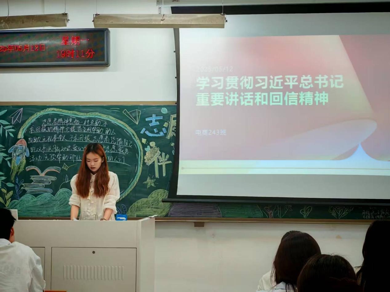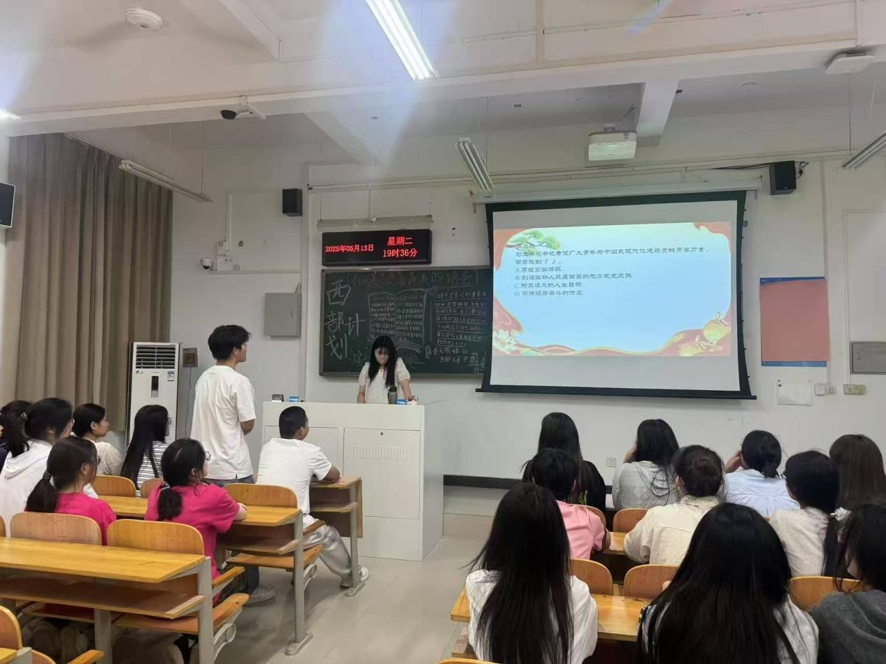 为进一步激励广大青年坚定理想信念,勇担时代使命,为中国式现代化建设贡献青春力量,5月12日—16日,PA视讯官方网站2024级各班以团课的形式,学习习近平总书记给谢依特小学戍边支教西部计划志愿者重要回信精神主题团日活动。
