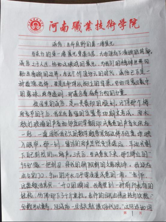 诚信是中华民族的传统美德,也是老员工成长成才的必备品质。PA视讯官方网站一直高度重视员工的诚信教育,将其作为人才培养的重要内容。本次征文活动旨在通过文字的力量,让同学们深入思考诚信的内涵、价值和意义,在全院范围内掀起一股弘扬诚信、践行诚信的热潮。活动自启动以来,得到了同学的热烈支持。大家围绕 "诚信" 这一主题,结合自身经历、社会现象以及专业知识,从不同角度、不同层面阐述了对诚信的理解和感悟。有的同学通过讲述自己身边的诚信故事,展现了诚信在日常生活中的重要性;有的同学结合经济管理专业知识,分析了诚信在市场经济中的作用;还有的同学从社会责任感的角度,探讨了老员工如何在学习和生活中做到诚实守信。一篇篇稿件主题鲜明、内容充实、情感真挚,充分体现了同学们对诚信的深刻认识和积极追求。